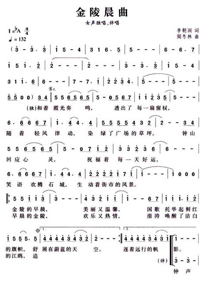 金陵晨曲简谱,金陵晨曲歌曲简介