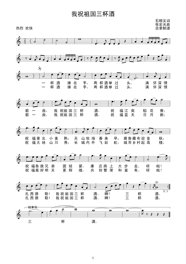我祝祖国三杯酒简谱,我祝祖国三杯酒歌曲简介