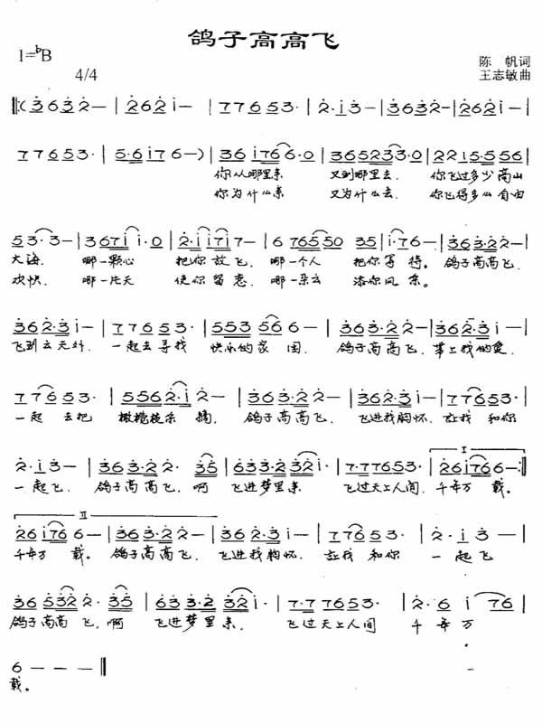鸽子高高飞简谱,鸽子高高飞歌曲简介