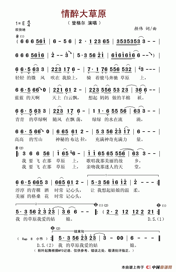 情醉大草原简谱,情醉大草原歌曲简介