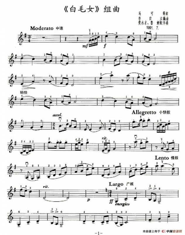 《白毛女》组曲提琴谱,《白毛女》组曲简谱
