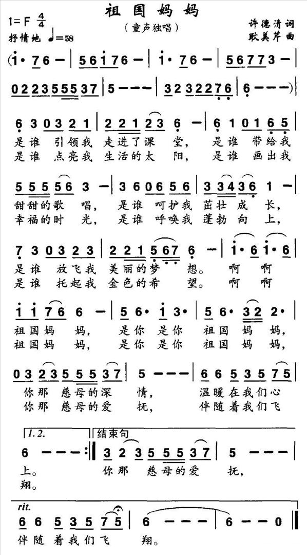 祖国妈妈简谱,祖国妈妈歌曲简介