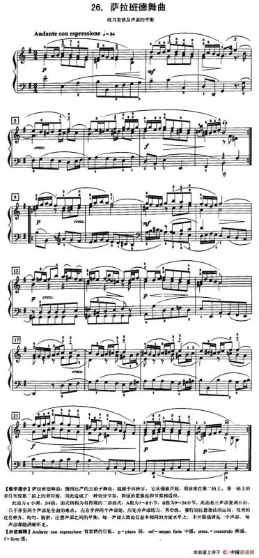 萨拉班德舞曲钢琴谱(练习表情及声部的平衡),萨拉班德舞曲简谱