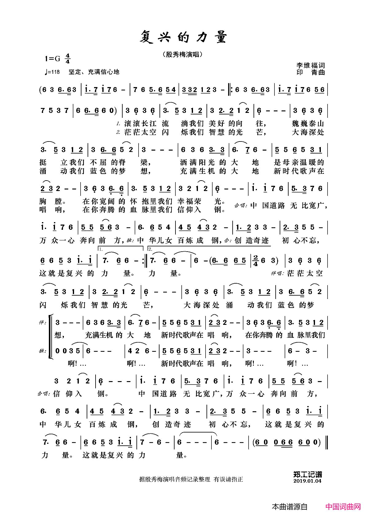 复兴的力量简谱,歌词