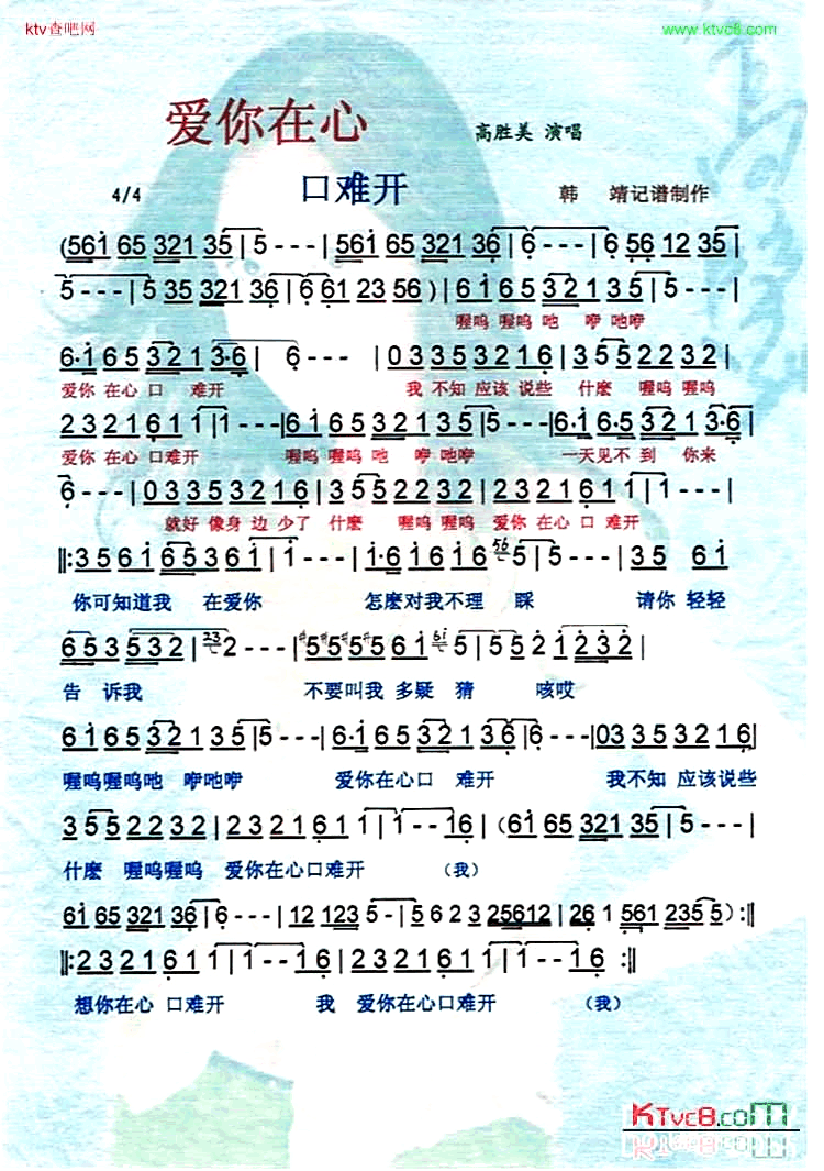 爱你在心口难开简谱,演唱高胜美,歌词