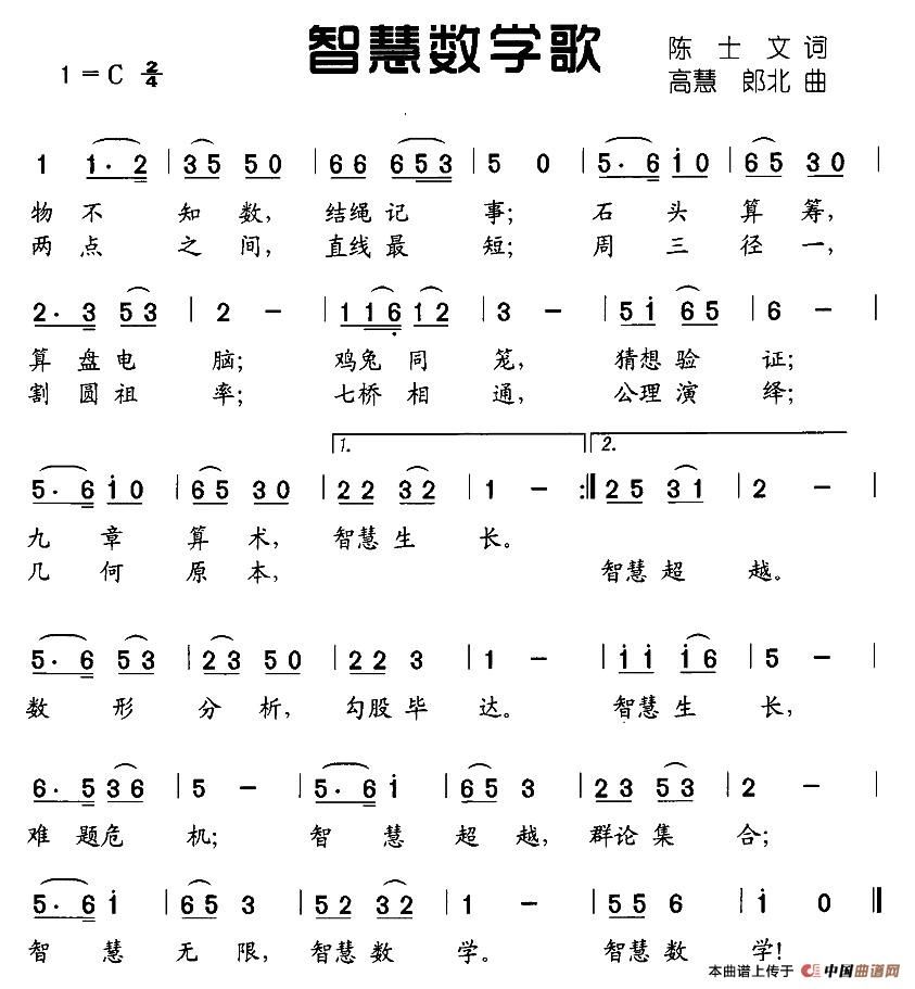智慧数字歌简谱,智慧数字歌歌曲简介