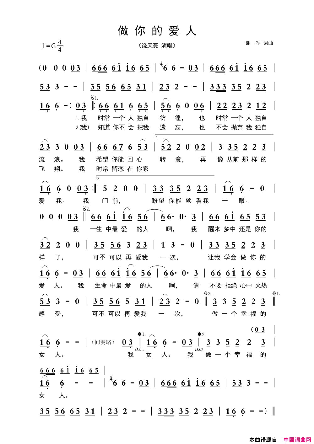 做你的爱人歌词