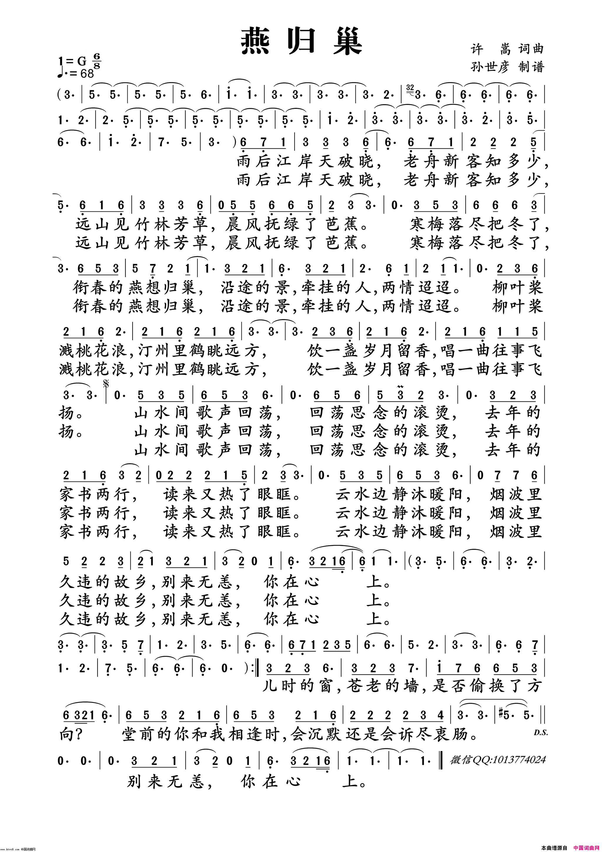 燕归巢歌词
