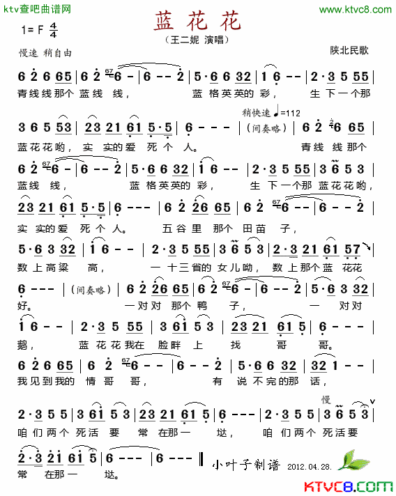 青线线(那个)蓝线线,蓝格英英(的)彩,生下一个蓝花花,实实的爱死个人。 青线线(那个)蓝线线,蓝格英英(的)彩,生下一个蓝花花,实实的爱死个人。 五谷里(那个)田苗子,数上高粱高,一十三省的女儿(呦),数上(那个)蓝花花好。 一对对(那个)鸭子,一对对鹅,蓝花花我在脸畔上找哥哥。我见到我的情哥哥,有说不完的话,咱们两个死活哦,要常在那一垯,咱们两个死活哦,要常在那一垯。版权声明:本站所有文章资源内容,如无特殊说明或标注,均为网络资源。如若本站内容侵犯了原著者的合法权益,可联系本站删除。