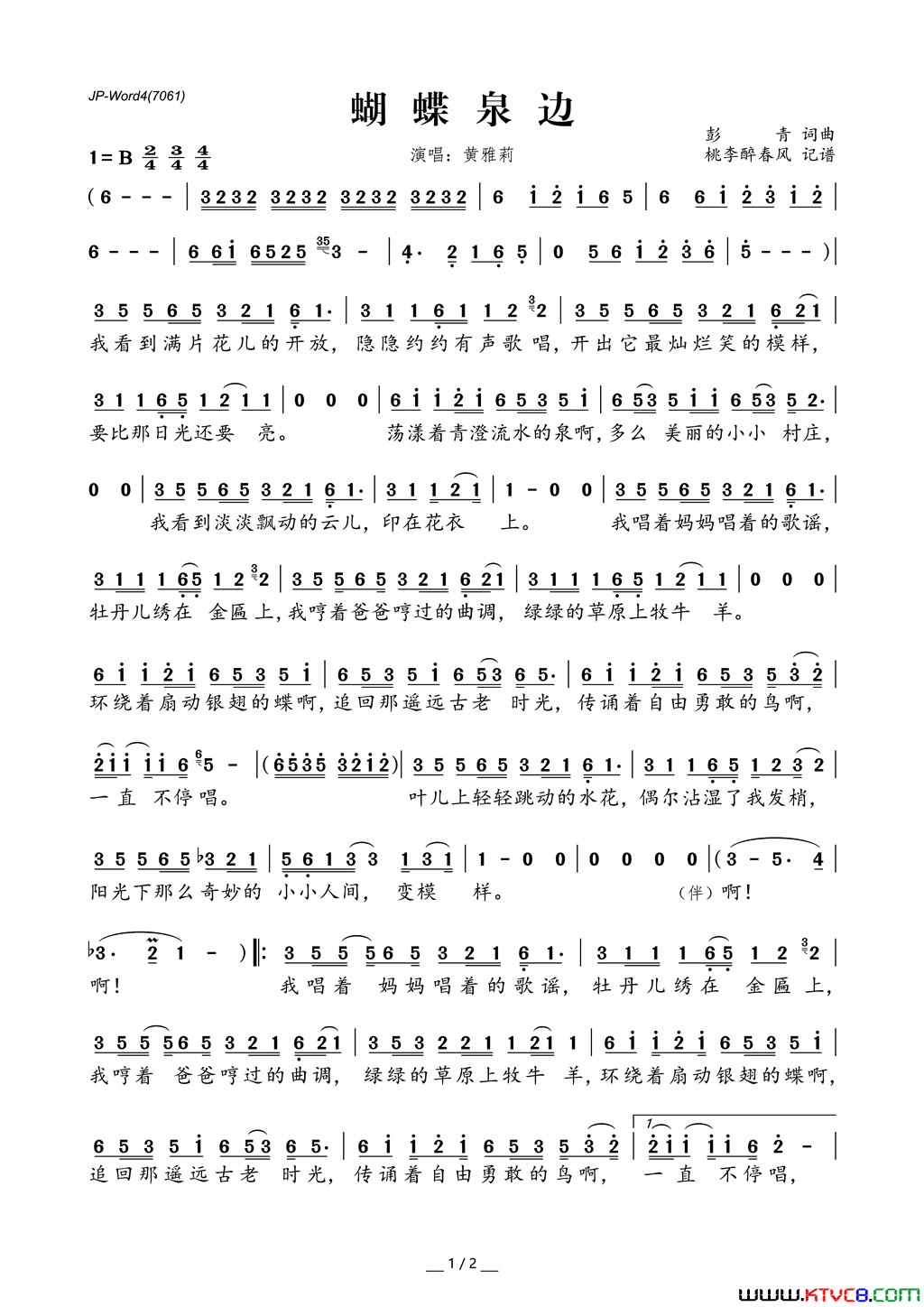 蝴蝶泉边歌词