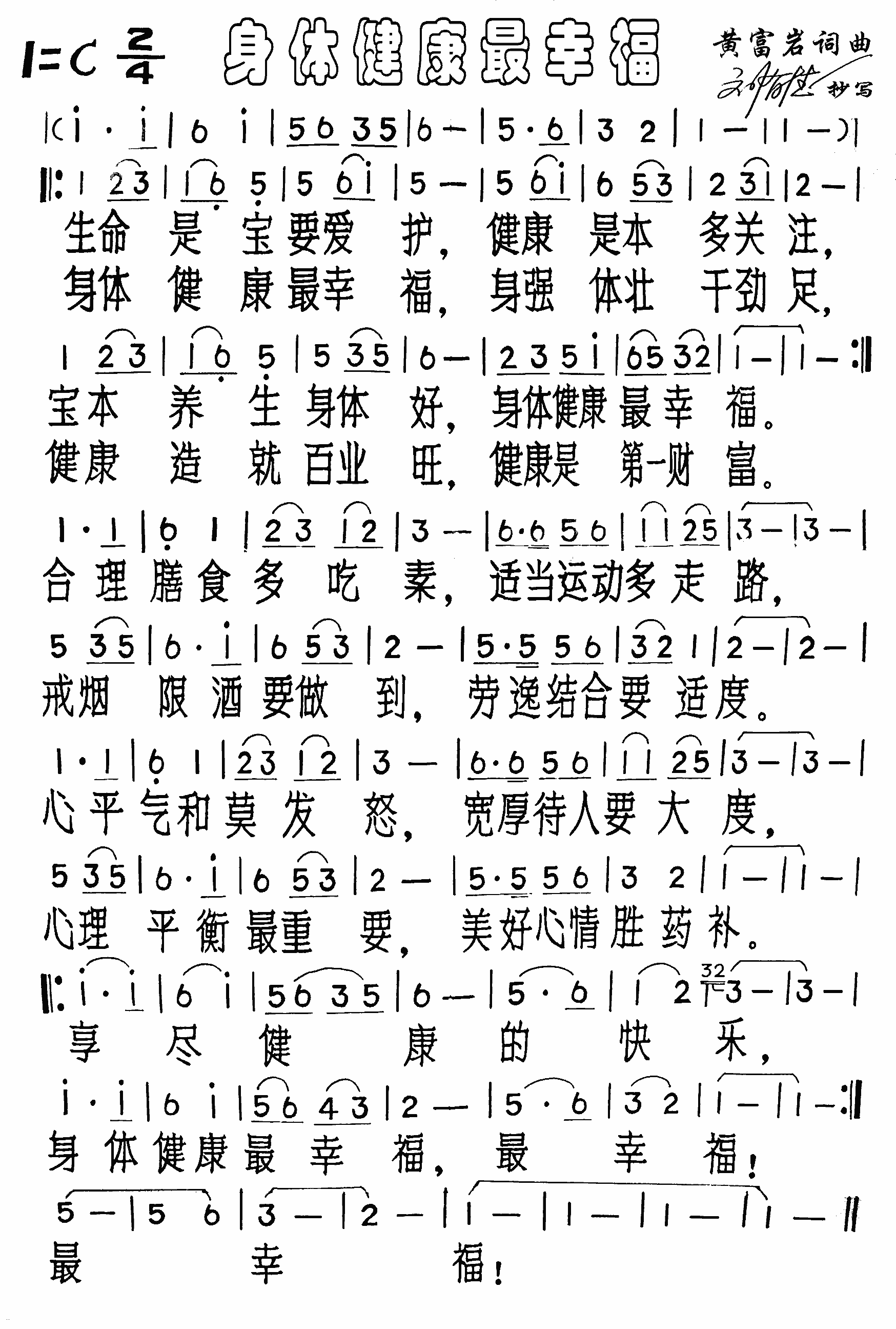身体健康最幸福简谱,身体健康最幸福歌曲简介