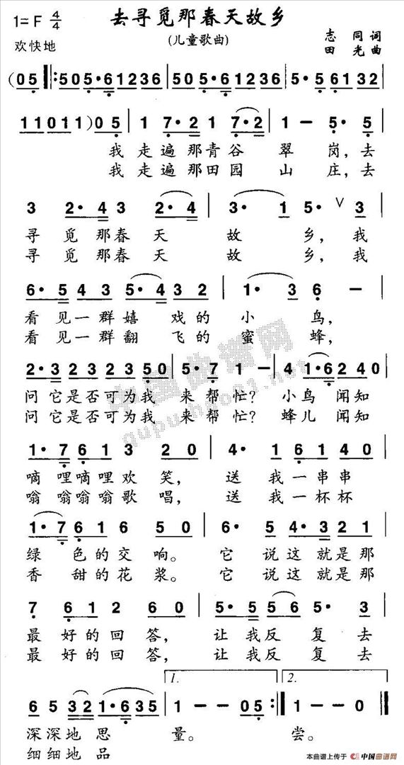 去寻觅那春天故乡简谱,去寻觅那春天故乡歌曲简介"