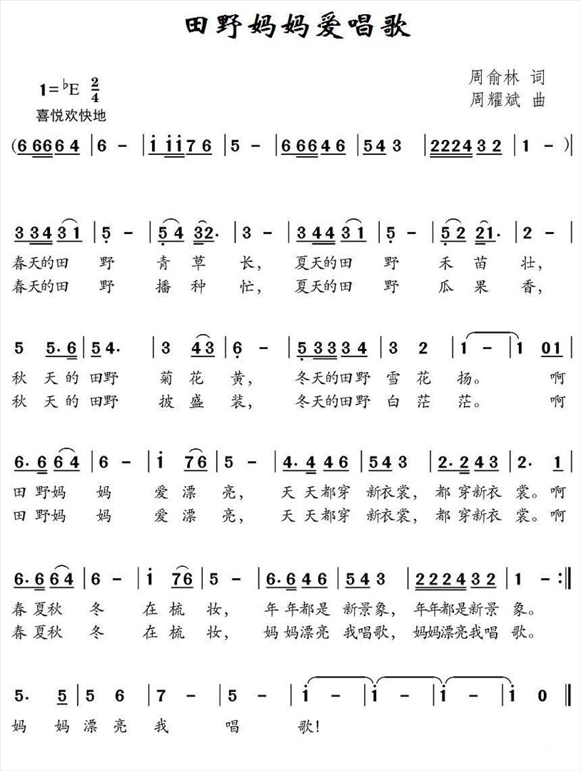 田野妈妈爱唱歌简谱,田野妈妈爱唱歌歌曲简介"