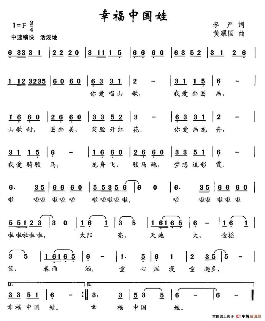 幸福中国娃简谱,幸福中国娃歌曲简介"