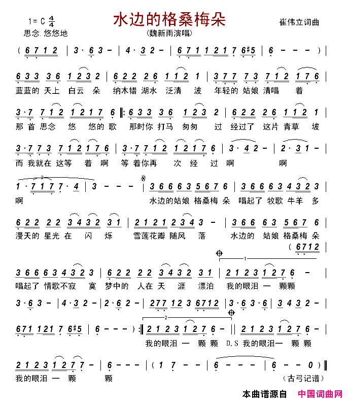 水边的格桑梅朵简谱,歌词"