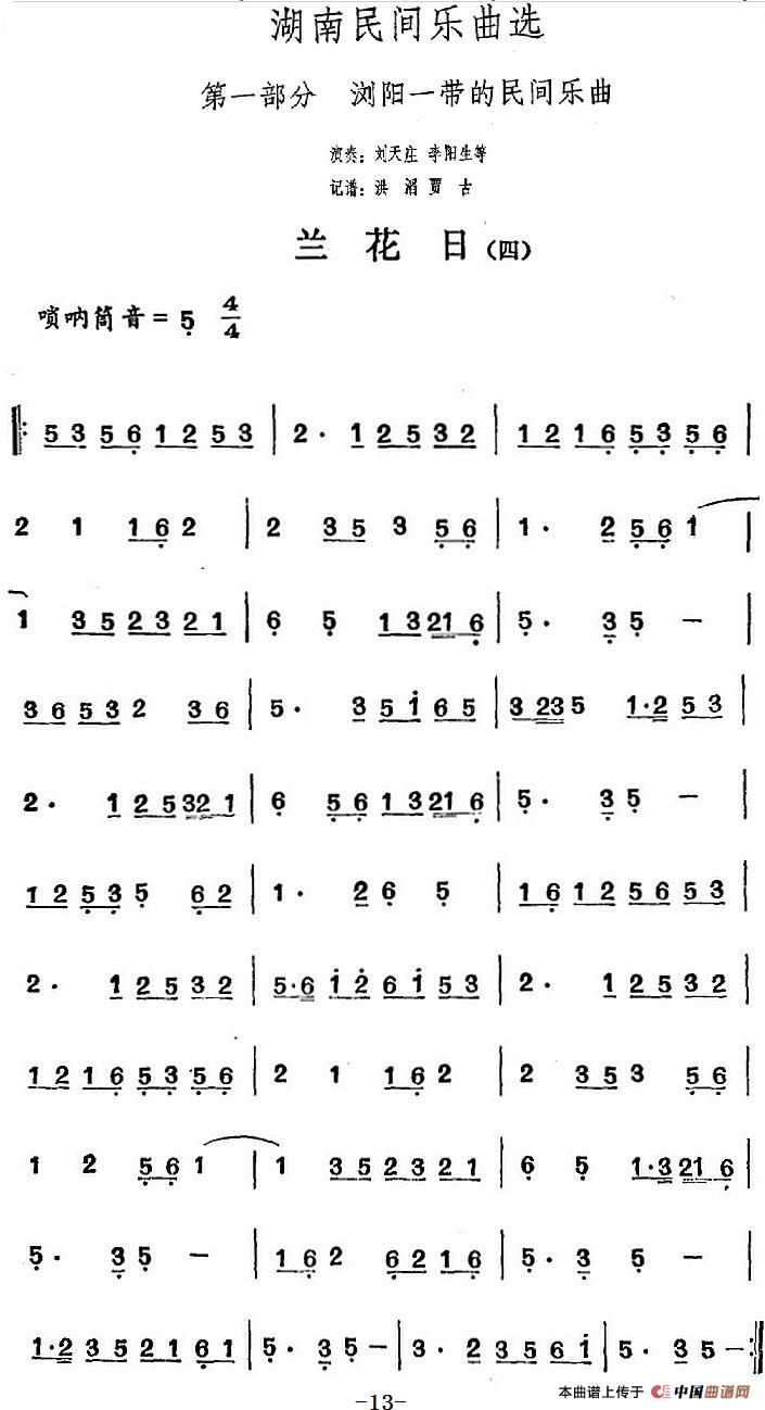 湖南民间乐曲选:兰花日(四),湖南民间乐曲选:兰花日简谱"