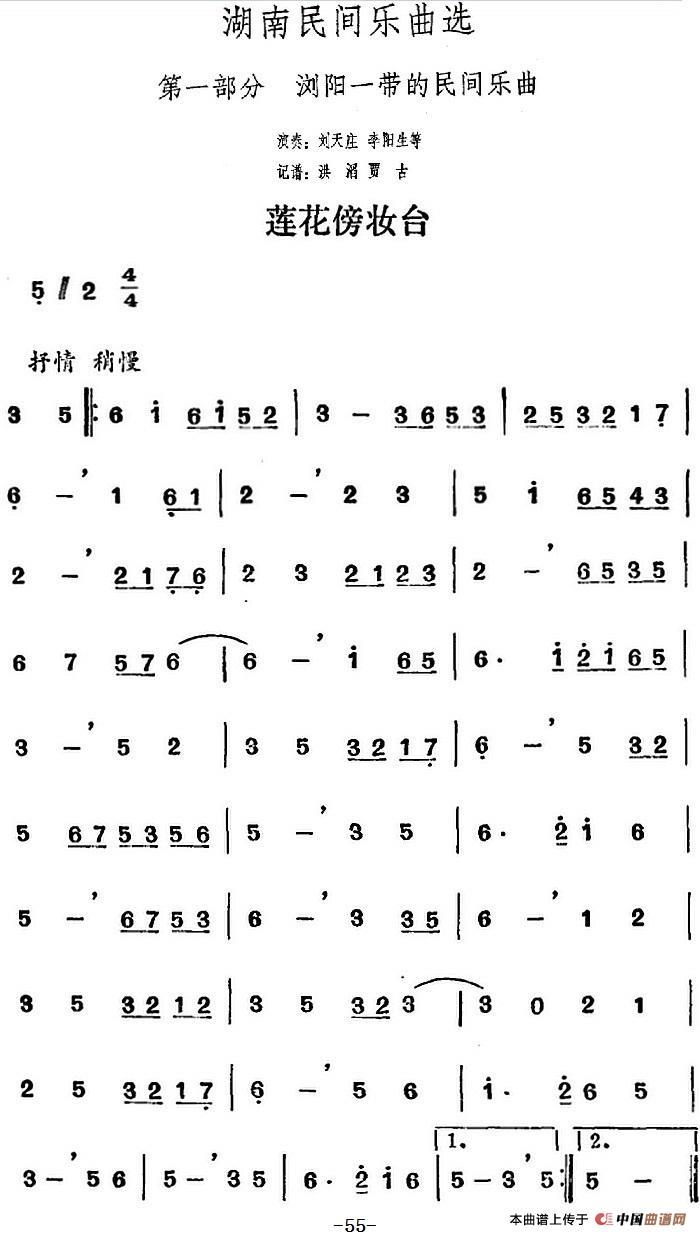 湖南民间乐曲选:莲花傍妆台,湖南民间乐曲选:莲花傍妆台简谱"