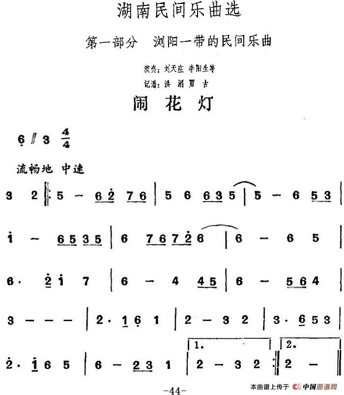 湖南民间乐曲选:闹花灯,湖南民间乐曲选:闹花灯简谱"
