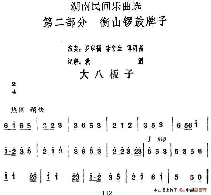 湖南民间乐曲选:大八板子,湖南民间乐曲选:大八板子简谱"