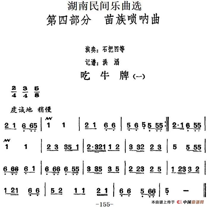 湖南民间乐曲选:吃牛牌(一),湖南民间乐曲选:吃牛牌(一)简谱"