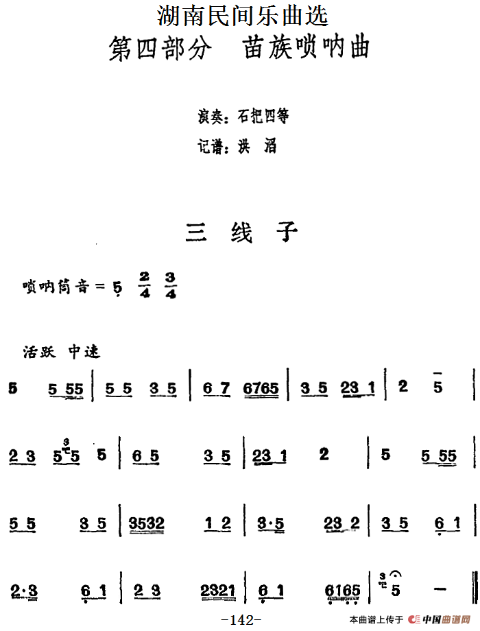 湖南民间乐曲选:三线子,湖南民间乐曲选:三线子简谱"