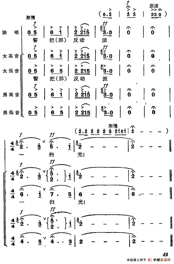 革命交响音乐《智取威虎山》:六、发动群众,革命交响音乐《智取威虎山》:六、发动群众简谱"