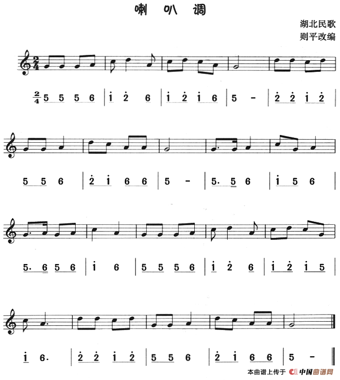 喇叭调(八孔竖笛线简谱对照版),喇叭调简谱"