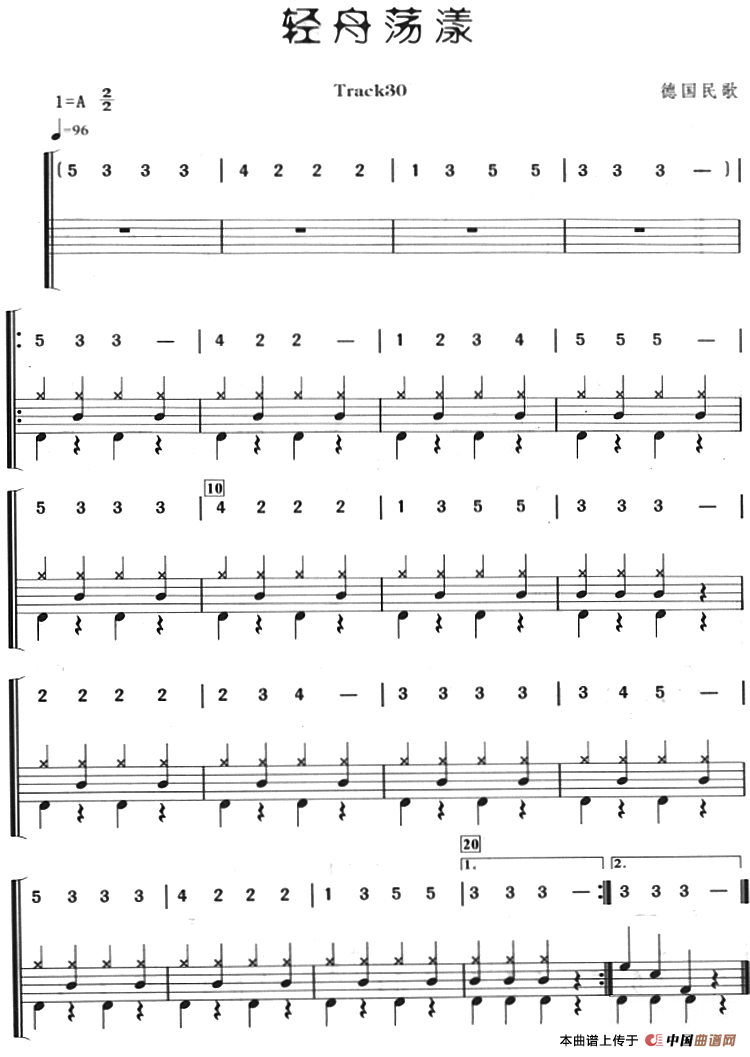 轻舟荡漾(架子鼓、主旋律+鼓谱),轻舟荡漾简谱"