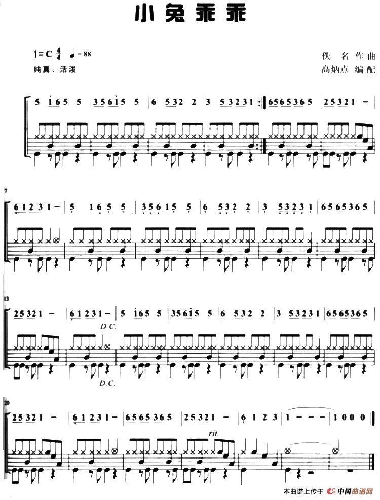 小兔乖乖(架子鼓、主旋律+鼓谱),小兔乖乖简谱"