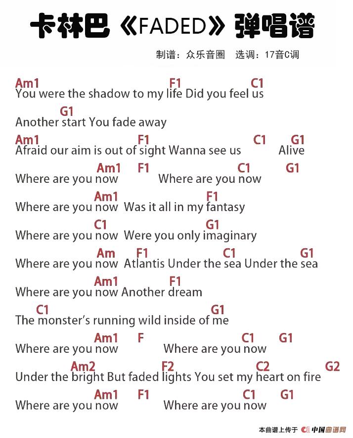 Faded(拇指琴卡林巴琴弹唱谱),Faded简谱"