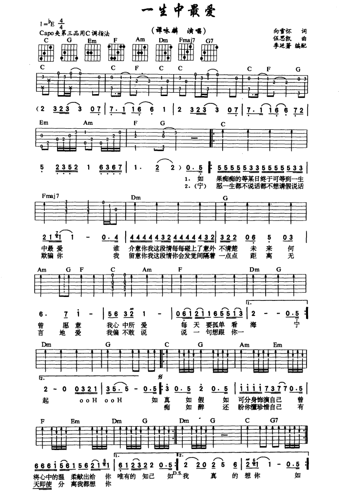 在我心里从此永远有个你简谱,在我心里从此永远有个你歌曲简介"