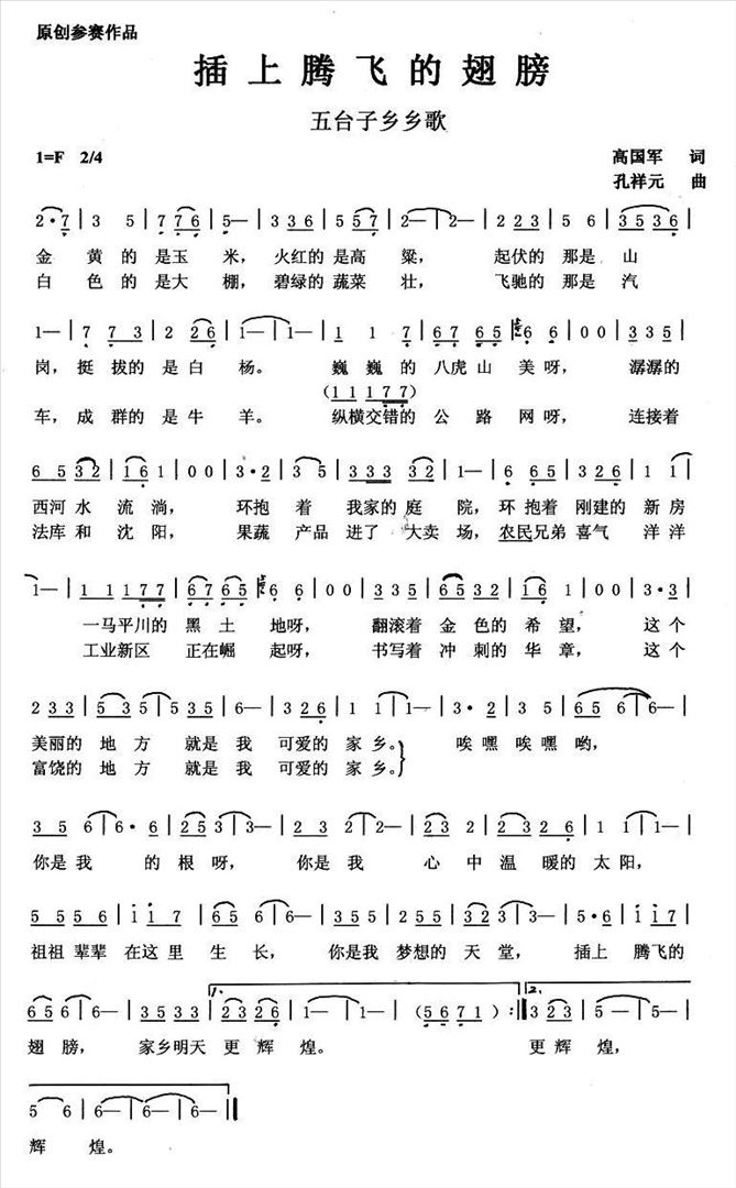 插上腾飞的翅膀简谱,插上腾飞的翅膀歌曲简介"