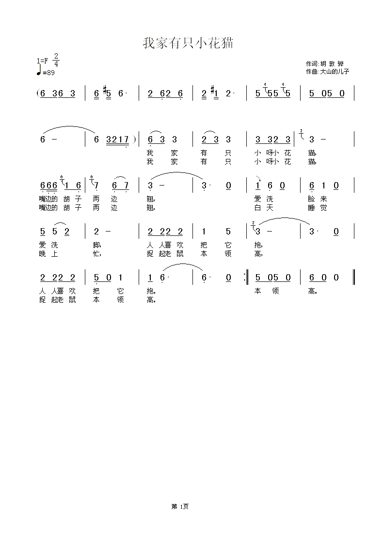 我家有只小花猫简谱,我家有只小花猫歌曲简介"