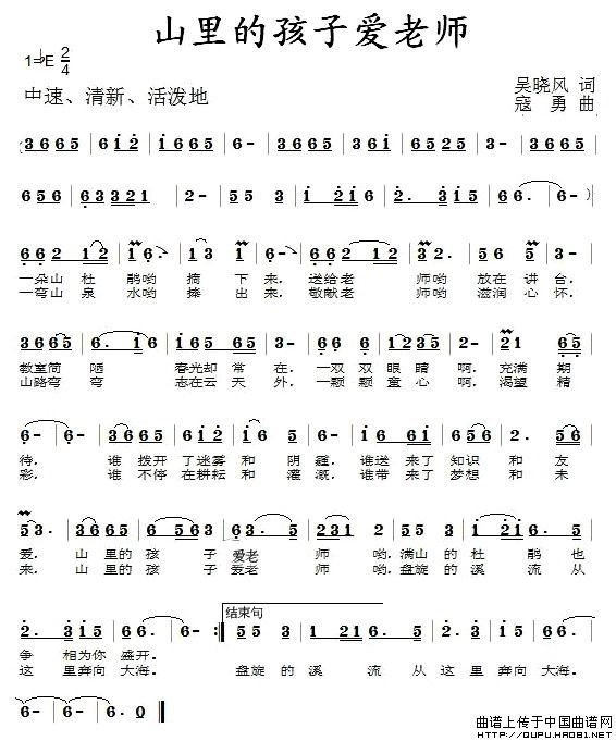 山里的孩子爱老师简谱,山里的孩子爱老师歌曲简介"