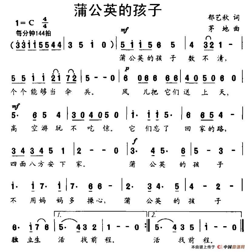 蒲公英的孩子简谱,蒲公英的孩子歌曲简介"