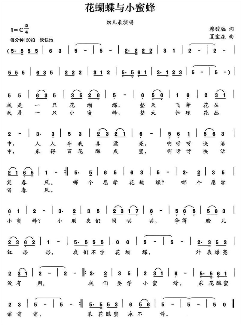花蝴蝶与小蜜蜂简谱,花蝴蝶与小蜜蜂歌曲简介"