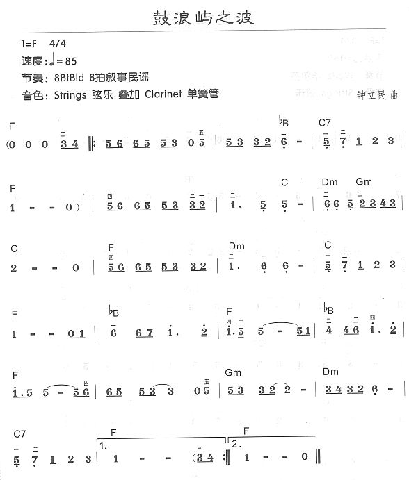 鼓浪屿之波简谱,鼓浪屿之波歌曲简介"