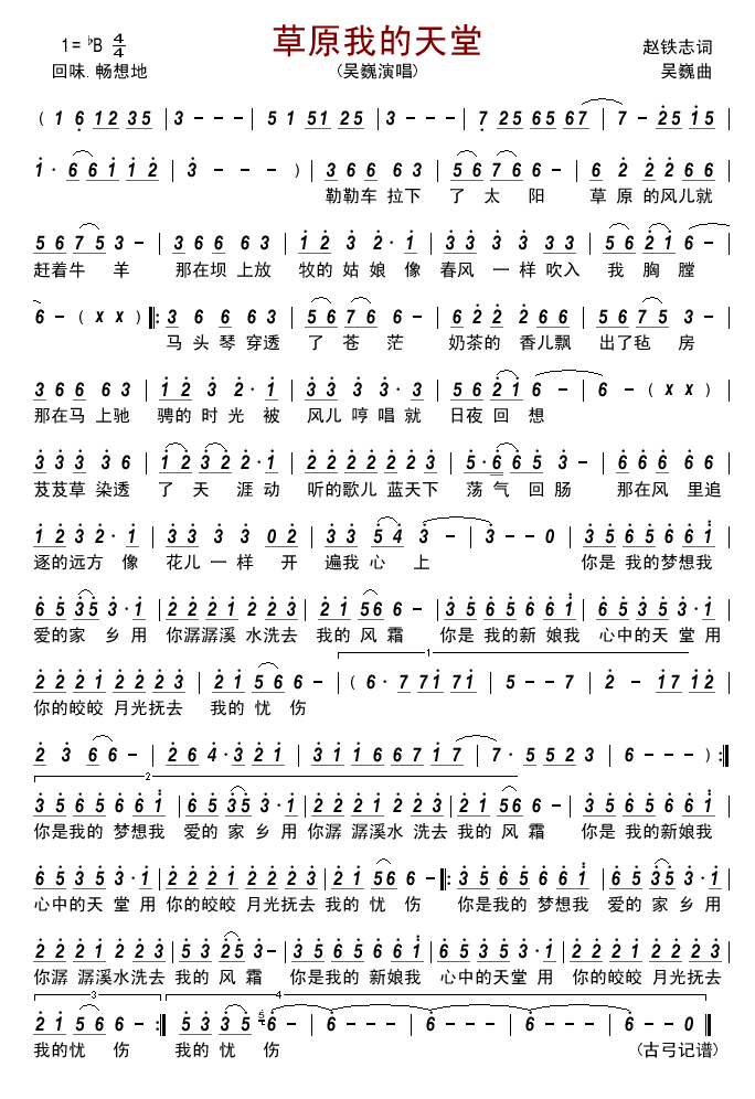 草原我的天堂简谱,草原我的天堂歌曲简介"