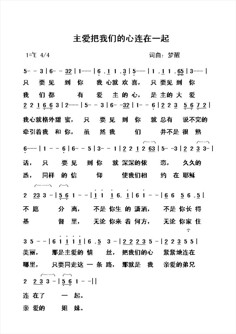 主爱把我们的心连在一起简谱,主爱把我们的心连在一起歌曲简介"