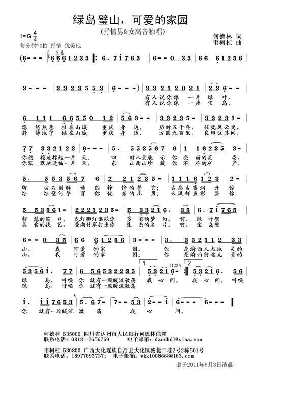 绿岛璧山,可爱的家园简谱,绿岛璧山,可爱的家园歌曲简介"