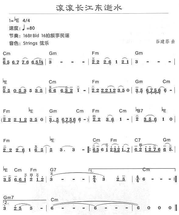 滚滚长江东逝水简谱,滚滚长江东逝水歌曲简介"