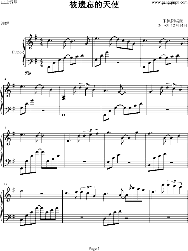 被遗忘的天使简谱,被遗忘的天使歌曲简介"