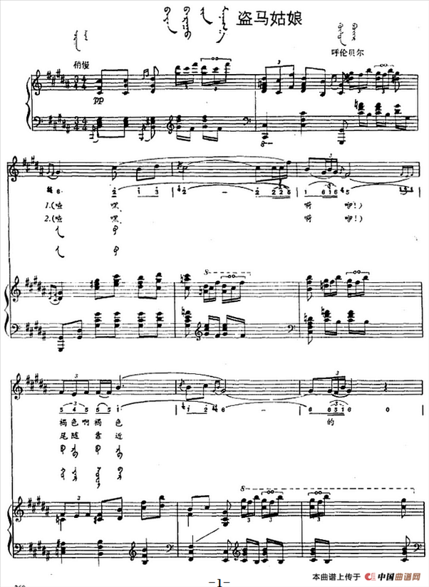 盗马姑娘简谱,盗马姑娘歌曲简介"