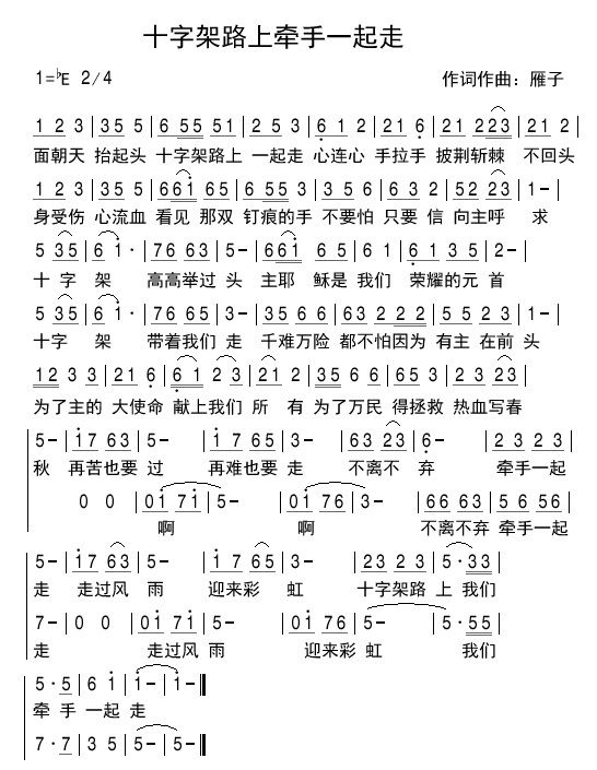 十字架路上牵手一起走简谱,十字架路上牵手一起走歌曲简介