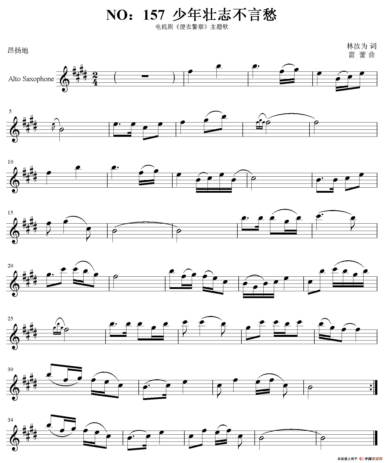少年壮志不言愁萨克斯谱,少年壮志不言愁萨克斯简谱