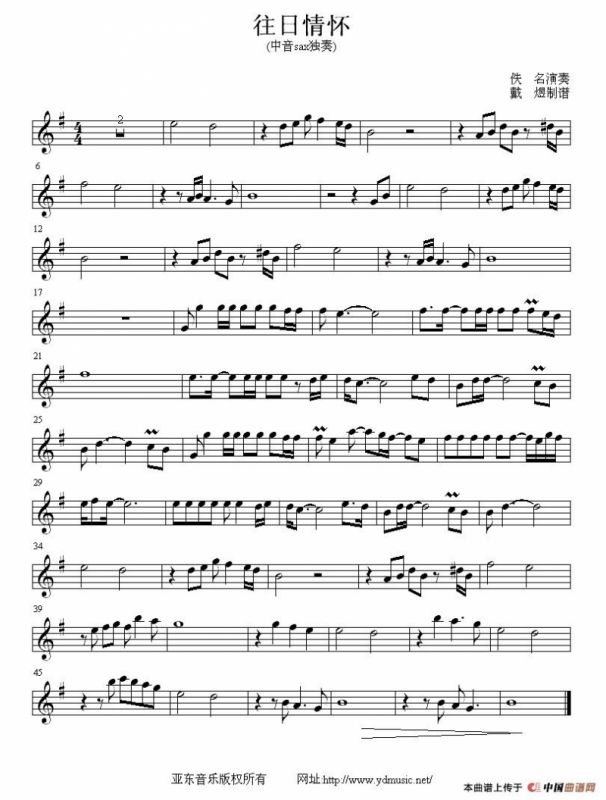 往日情怀萨克斯谱,往日情怀萨克斯简谱