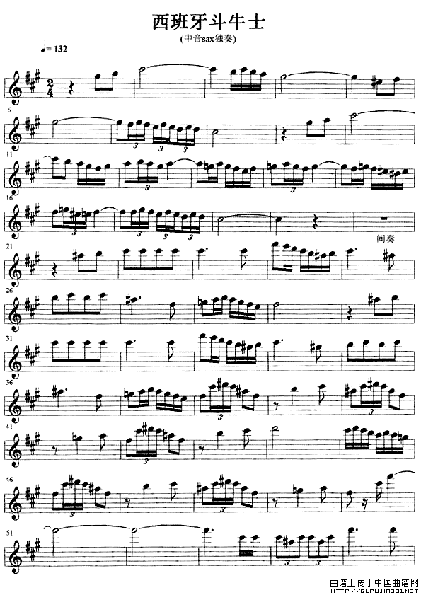 西班牙斗牛士萨克斯谱,西班牙斗牛士萨克斯简谱