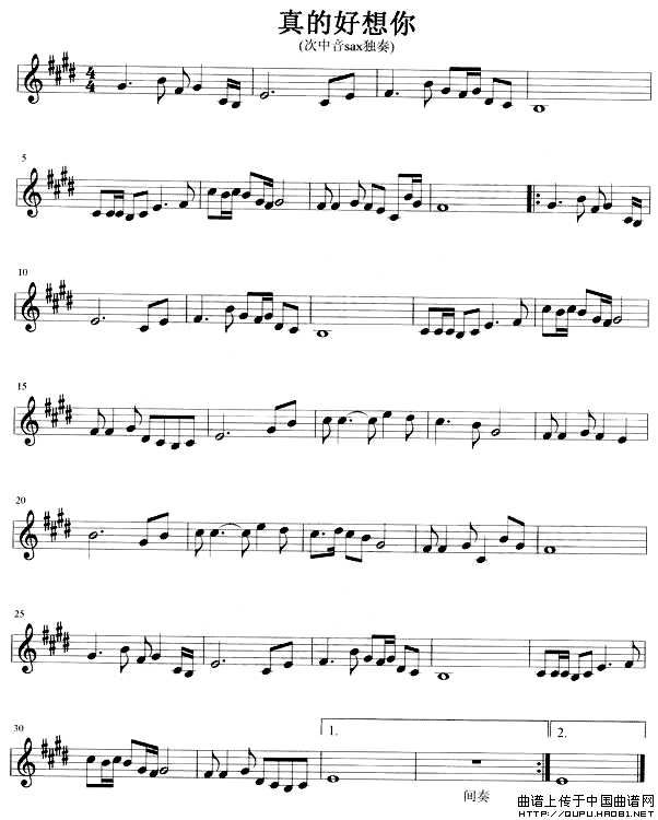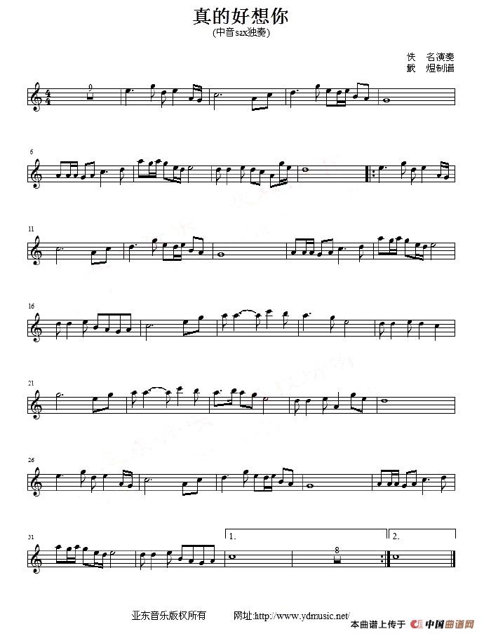 真的好想你萨克斯谱,真的好想你萨克斯简谱