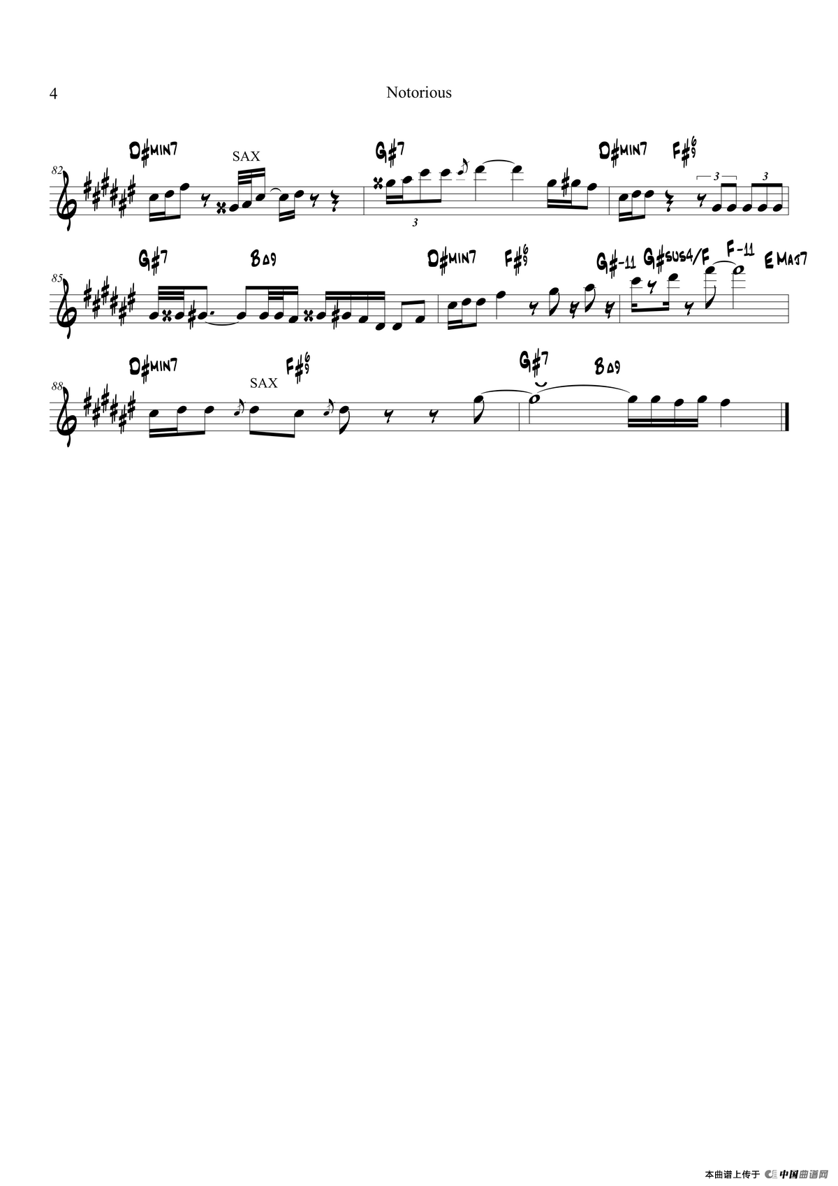 Notorious萨克斯谱(次中音萨克斯),Notorious萨克斯简谱"