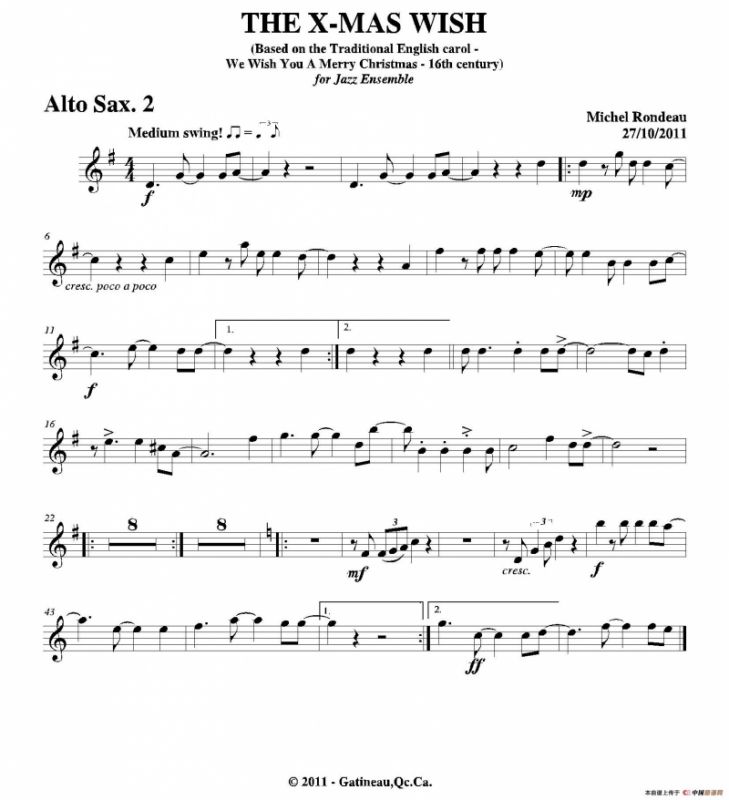 THE X-MAS WISH萨克斯谱(第二中音萨克斯分谱),THE X-MAS WISH萨克斯简谱"